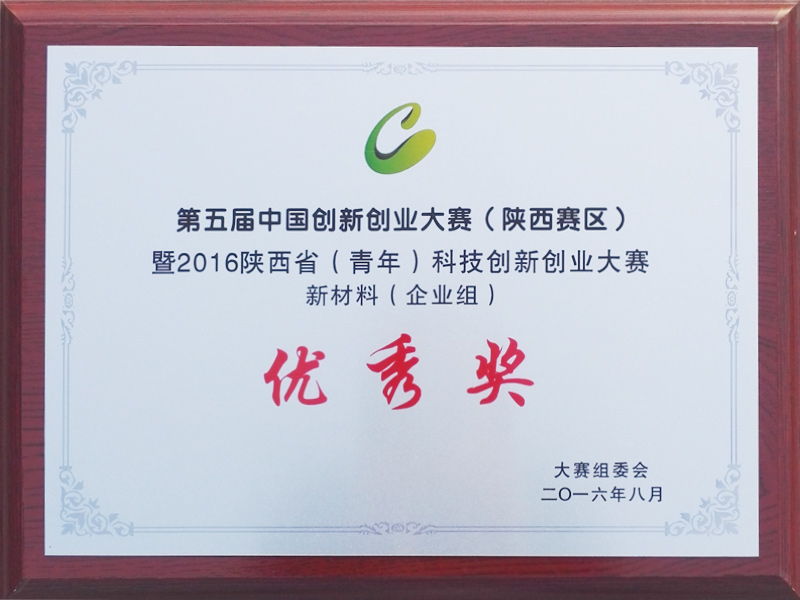 2016年8月,寶雞志普有色金屬加工有限公司榮獲第五屆中國(guó)創(chuàng)新創(chuàng)業(yè)大賽(陜西賽區(qū))暨2016陜西省(青年)科技創(chuàng)新創(chuàng)業(yè)大賽新材料(企業(yè)組)優(yōu)秀獎(jiǎng)并頒發(fā)證書。